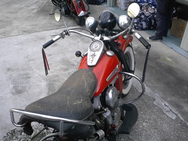 これまでのナックルヘッドとは違い、レッドボールと呼ばれるタンクエンブレムや直線的なメーターダッシュ、トゥームストーン(墓石)と呼ばれるテールランプ、ストレートライン状になったシフトゲートなど、この'47モデルにしか採用されなかったパーツが多数装備されたモデルで、現車はフェンダーモールやオーナメント、サドルバッグなど、当時のオプションフル装備のような佇まいのナックルヘッドです。