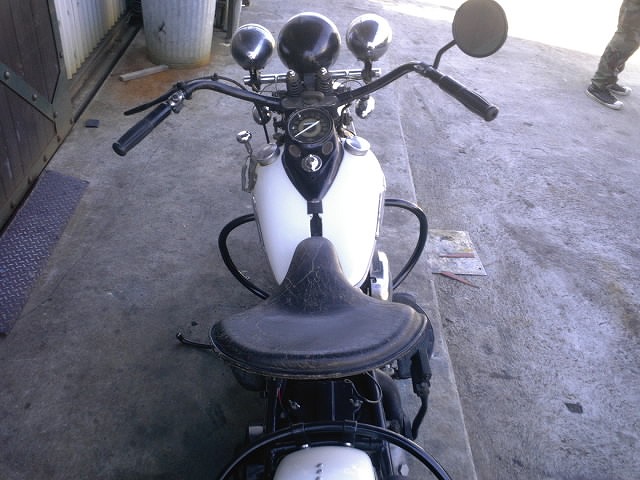 車体上部より撮影。 細身の純正タンクを中心に絶妙なバランスで各パーツが配置されているのが解ります。 |