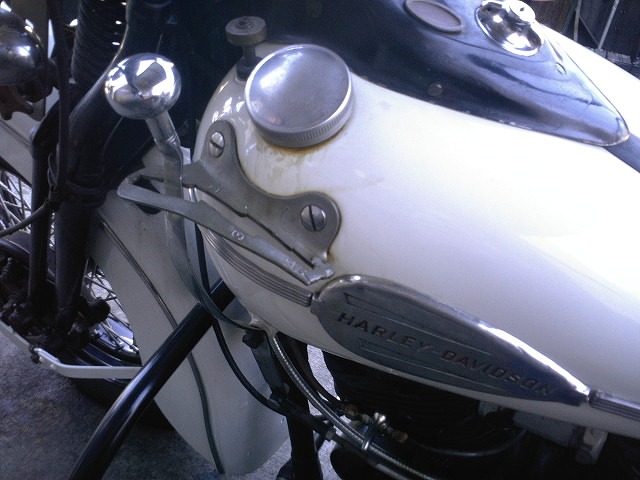 1942年当時のティアドロップ型ツールボックス。 レプリカが数多く出回っていますが、これはホンモノ。 外観の雰囲気にも大きく影響を与える未だ高い人気のアクセサリーです。 |
