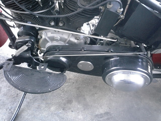 車体左側のプライマリー回りの画像。 別名”ストリームライン”と呼ばれるハーフムーンタイプのフットボード。 |