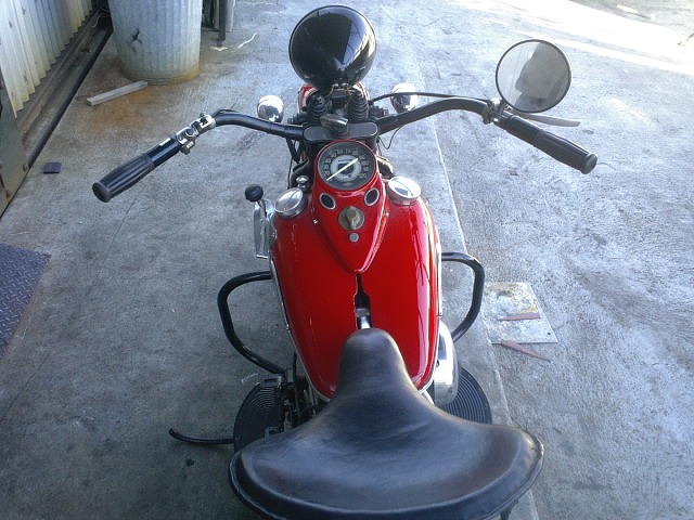 V-TWIN製サドルバッグ。 いい風合いが出てきてこのナックルに似合っています。 |