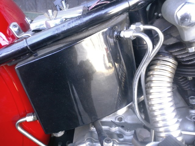 メタルのオイルチューブの取り回しが美しいオイルタンク周辺。 |