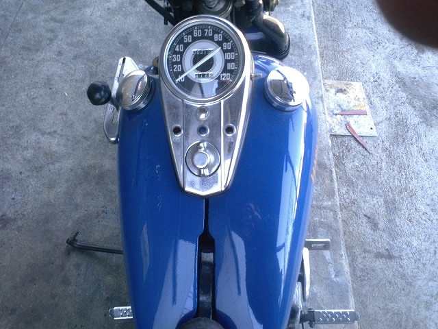 1947年のナックル最終型から採用されていたブルックス・スティーブンスデザインのストレートラインのメーターダッシュ。 |