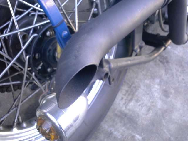 2in1のワンオフマフラー。 マフラー先端はターンアウトされています。 |
