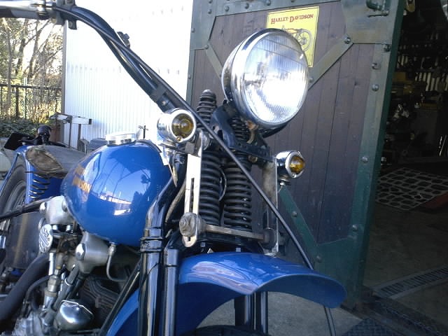 フロントヘッドランプ回り。 本来ヘッドランプ下にあるホーンは、左足元に移設されています。 |