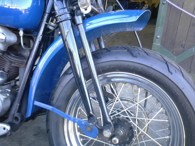 フロントフェンダーは社外のモノを短くカット。 ボバースタイルに大きく貢献しています。 前後タイヤはグリップ力の高い16インチROADRANGER。 |
