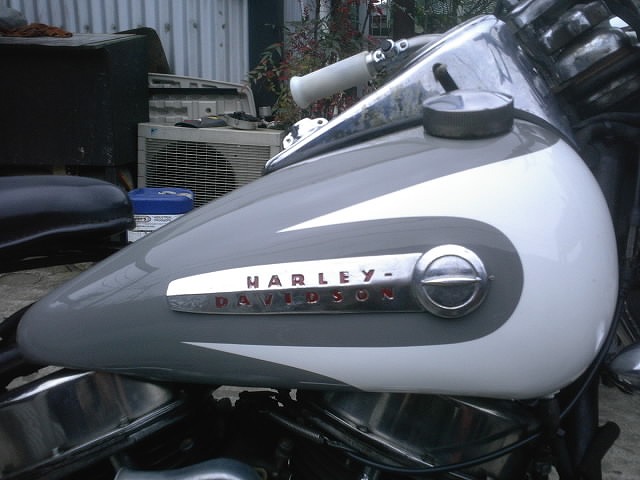 ホワイトスキャロップが映えるガソリンタンク。 ベースはヴィンテージ感溢れるグレーカラー。 ペイントはフリーダム堀。 |