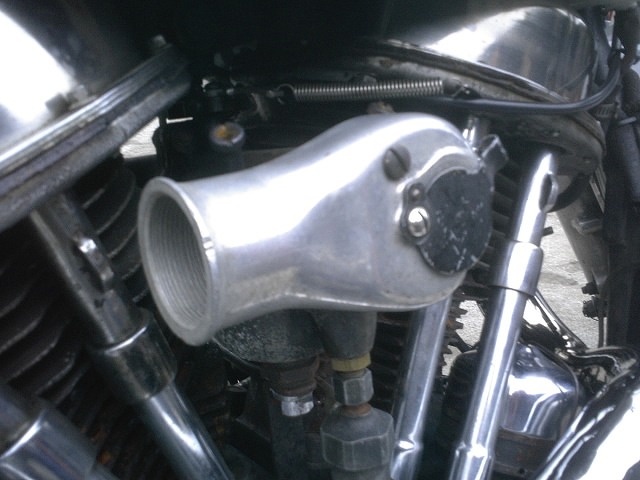 年式不明ながらヴィンテージパーツであろう追加吸入口付きエアクリーナーカバー。 インディアン用? |