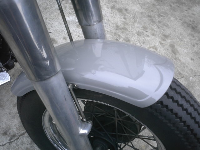 フリーダムオリジナルのグラスファイバーでできたフェンダーをカットし装着したフロントフェンダー。 軽快なこのマシンによく似合っています。 |