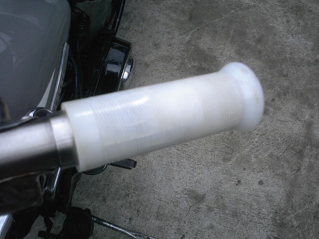 進角側ハンドル部分。 ホワイトのシカゴグリップの中にはスロットル側同様POSH製のインナースロットルを進角用に装着。 |