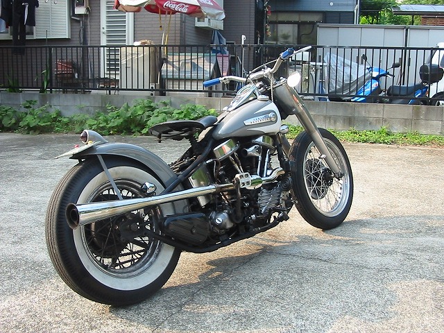 '49ハイドラグライドをベースに、フリーダムにてほぼフルカスタムされたボバースタイルのカスタムハーレーです。 純正フロントフォークや純正タンクなどFLの雰囲気を残しながらも軽快なイメージに仕上がりました。 |