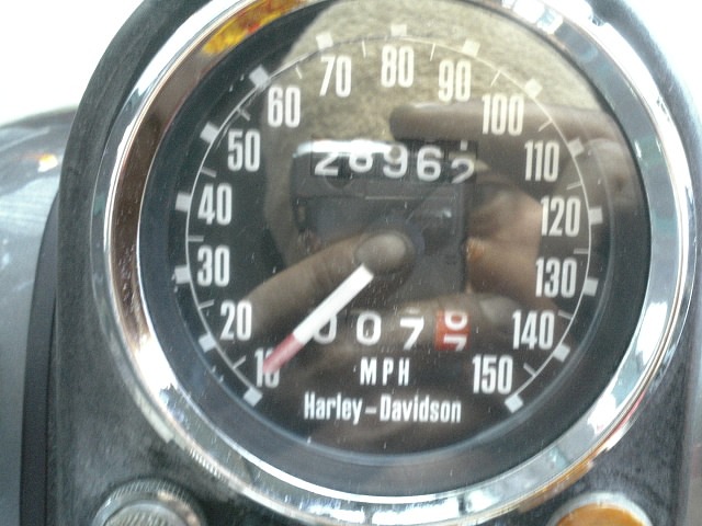 メーターはマイル表示。 現時点で28962マイル(46610 km)走行。 |