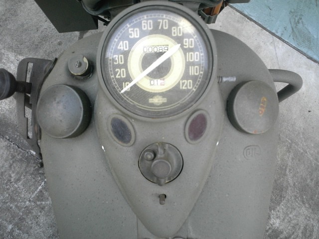 メーターダッュの下にはWLミリタリー系の銅板エッジング処理されたデータプレートが。 '41〜'52年まで数種類存在し、オイル使用番手/気温などが表記されています。 |