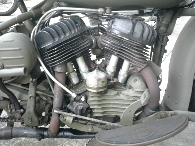 45cu.in.(750cc)WLA サイドバルブエンジン。 ベビーツインとも呼ばれています。 エキゾースト部分に若干サビが見られます。 |