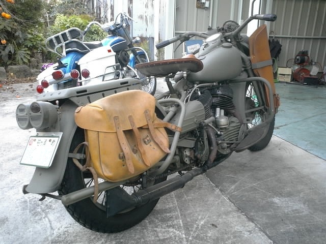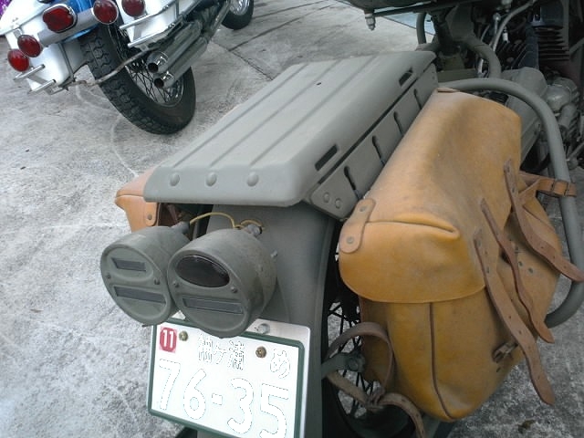 WLAのリア周り。 本皮のサドルバッグは多少型崩れしていますが、復元は容易に出来る範囲です。 |