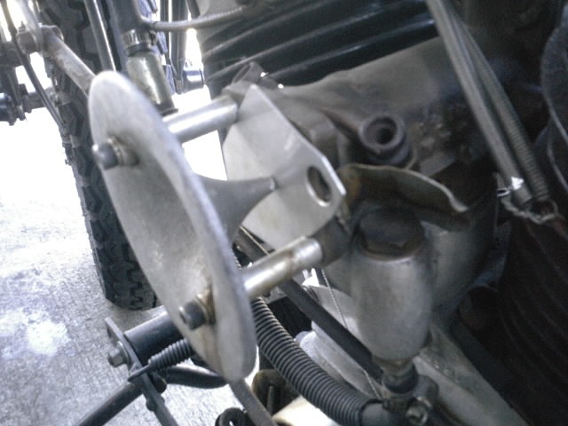 こちらはリアブレーキ回り。 こちらもSRのリアブレーキを移植して必要な制動力を確保しています。 |